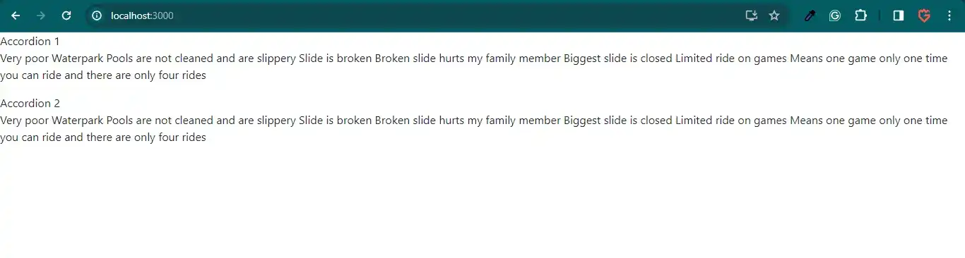 export default Accordion;In the above code example, I have used the accordion component and add accordion in react js.