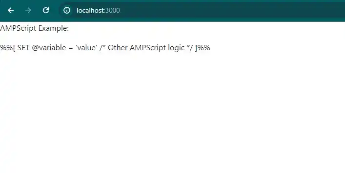 export default App;In the above code example, I have used the dangerouslySetInnerHTML={{ __html: ampscript }} component and add ampscript in react js.