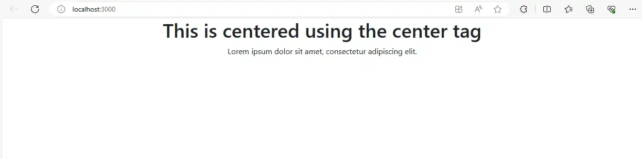 export default CenterUsingTag;In the above code example, I have used the <center> tag and add center tag in react js.