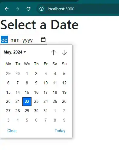 export default App;In the above code example, I have used the type="date" object and add date in react js.