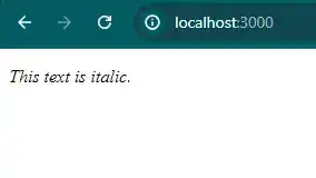 To add italic text in react js, you can set font-style: italic; in .italic-text. It will add italic text in react js.