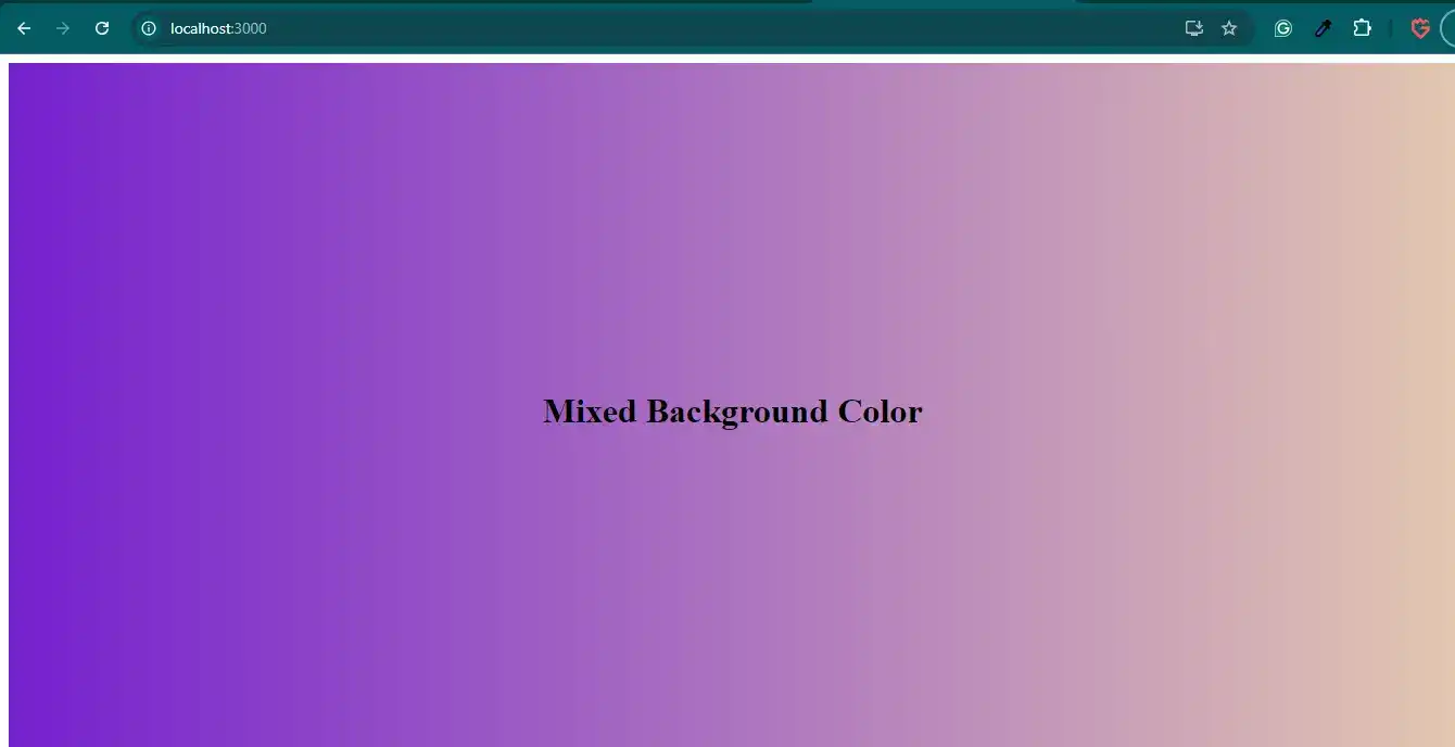 To add mixed background color in react js, you can set background: linear-gradient(to right, #7520cf, #e3c7b1); in mixed-background. It will add mixed background color in react js.