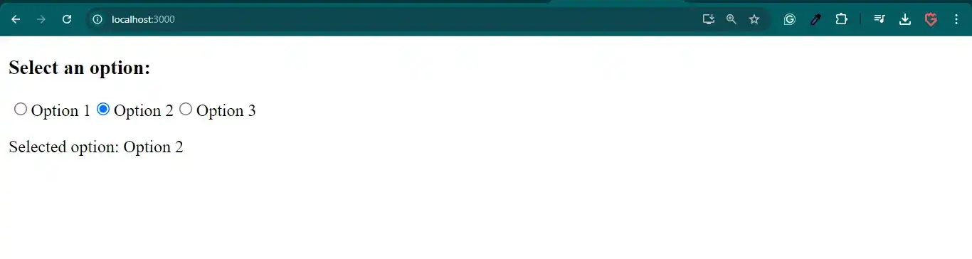 export default App;In the above code example, I have used the onChange={handleOptionChange} to add name attribute to radio button in react js.
