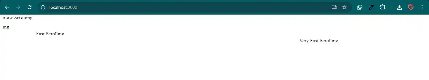 export default App;In the above code example, I have used the scrollamount="50" to change marquee speed in react js.