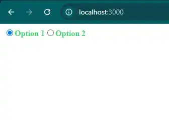 To change radio button text color in react js, you can set color: #34db6e; in .radio-label. It will change radio button text color in react js.