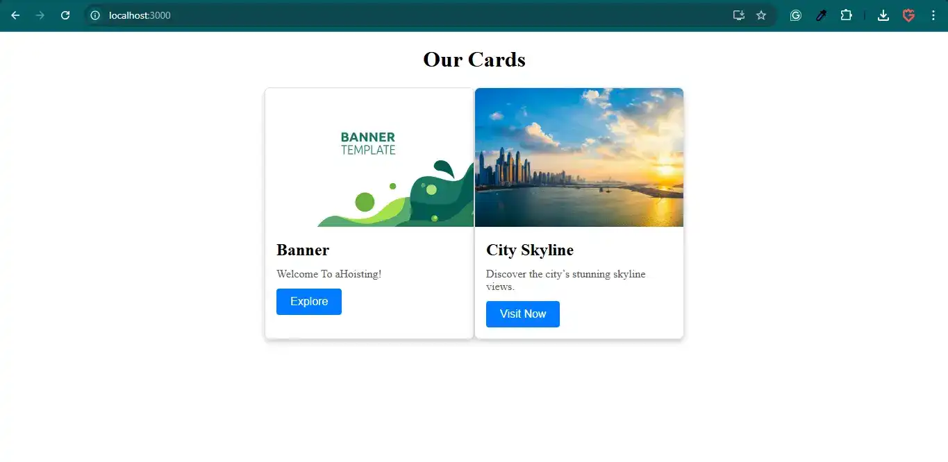 export default Card;In the above code example, I have used the <Card> to create card in react js.