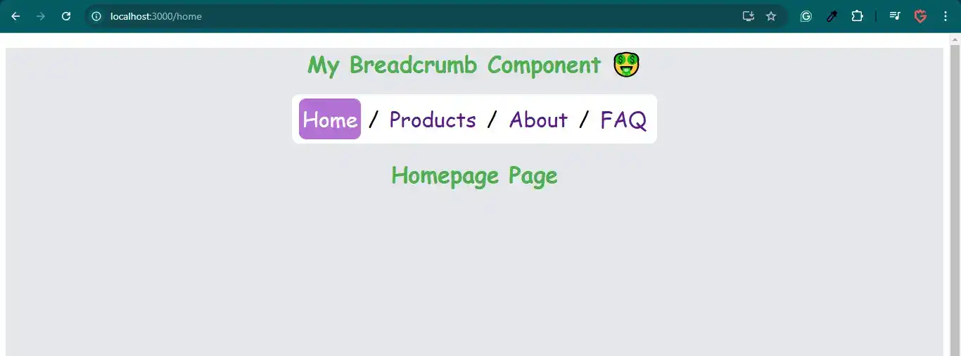 }In the above code example, I have used the "react-router-dom" package to create breadcrumbs in react js.