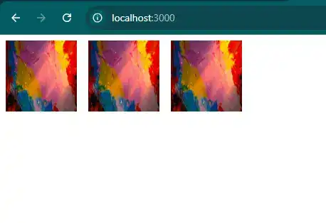 The below code is an example of a React. You have to import './img/painting-1.jpg' and set display: flex; and gap: 16px; in .image-container to create gap between images in react js.