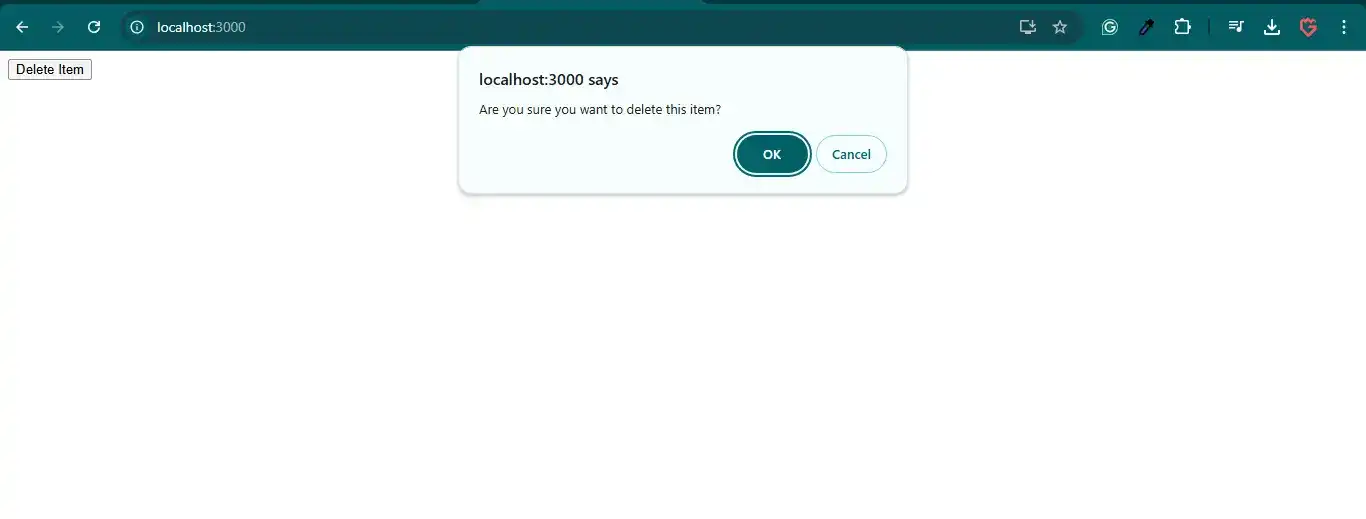 const userConfirmed = window.confirm('Are you sure you want to delete this item?');