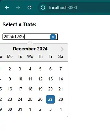 export default App;In the above code example, I have used the 'react-datepicker' to use datepicker in react js.
