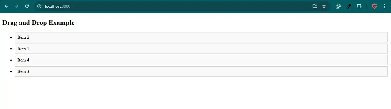 const [items, setItems] = useState(["Item 1", "Item 2", "Item 3", "Item 4"]);